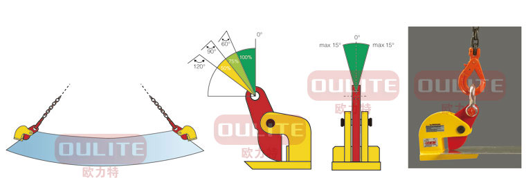 .額定載荷是指吊鉗成對使用、吊點夾具為60度時允許起吊的最大重量,吊裝作業(yè)中兩只或4只配套成組使用